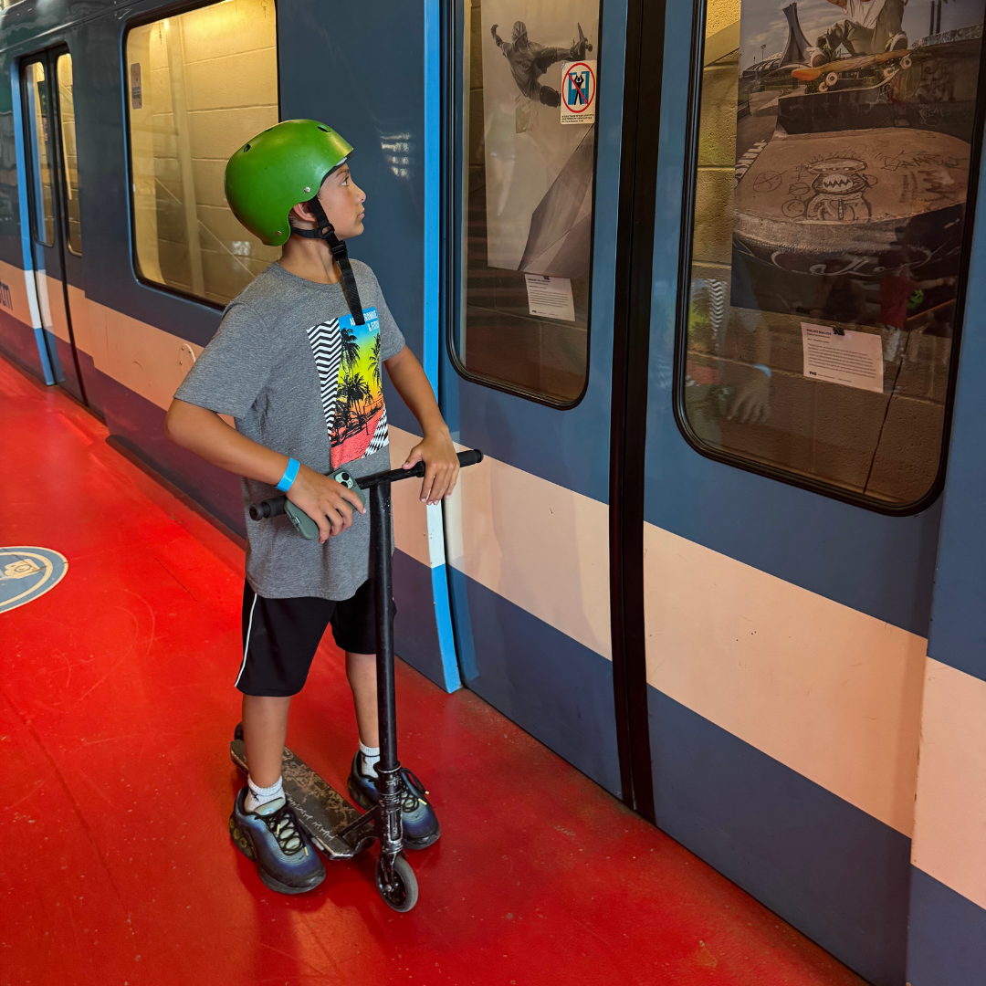 Our team will be ready to greet you starting at 7:30 AM! Parents and participants can meet our guides and enjoy some ice breakers before we depart by bus at 8:30 AM for TAZ. Once we arrive, the fun begins! Participants will spend the morning skateboarding, rollerblading, and scootering, learning new tricks and building confidence with guidance from the pro skaters on site. After a lunch break, we’ll dive back into more skateboarding and rollerblading, putting new skills into practice and trying out exciting challenges. We’ll leave the park at 3:15 PM and return to our meeting point around 4:15 PM, where participants can relax, hang out, and share their favorite moments. Pick-up begins at 4:15 PM, and we’ll officially close the day at 6:00 PM.